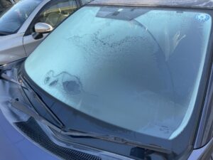 秋の夜や早朝は気温差でフロントガラスが曇りやすくなります。
